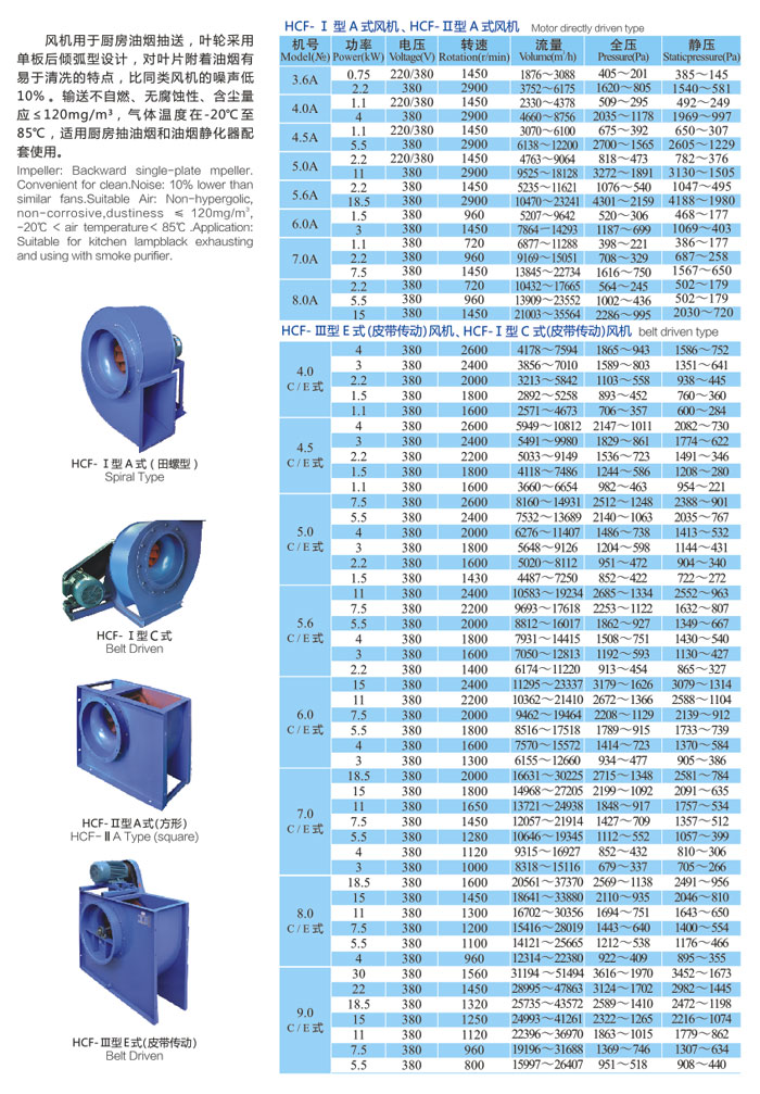 HCF系列单板后倾式厨房油烟抽风机